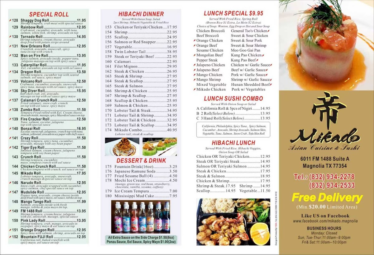 Tempura Fried rolled with Eel, Cream cheese, Avocado inside, masago, spicy Mayo&eel sauce on top.