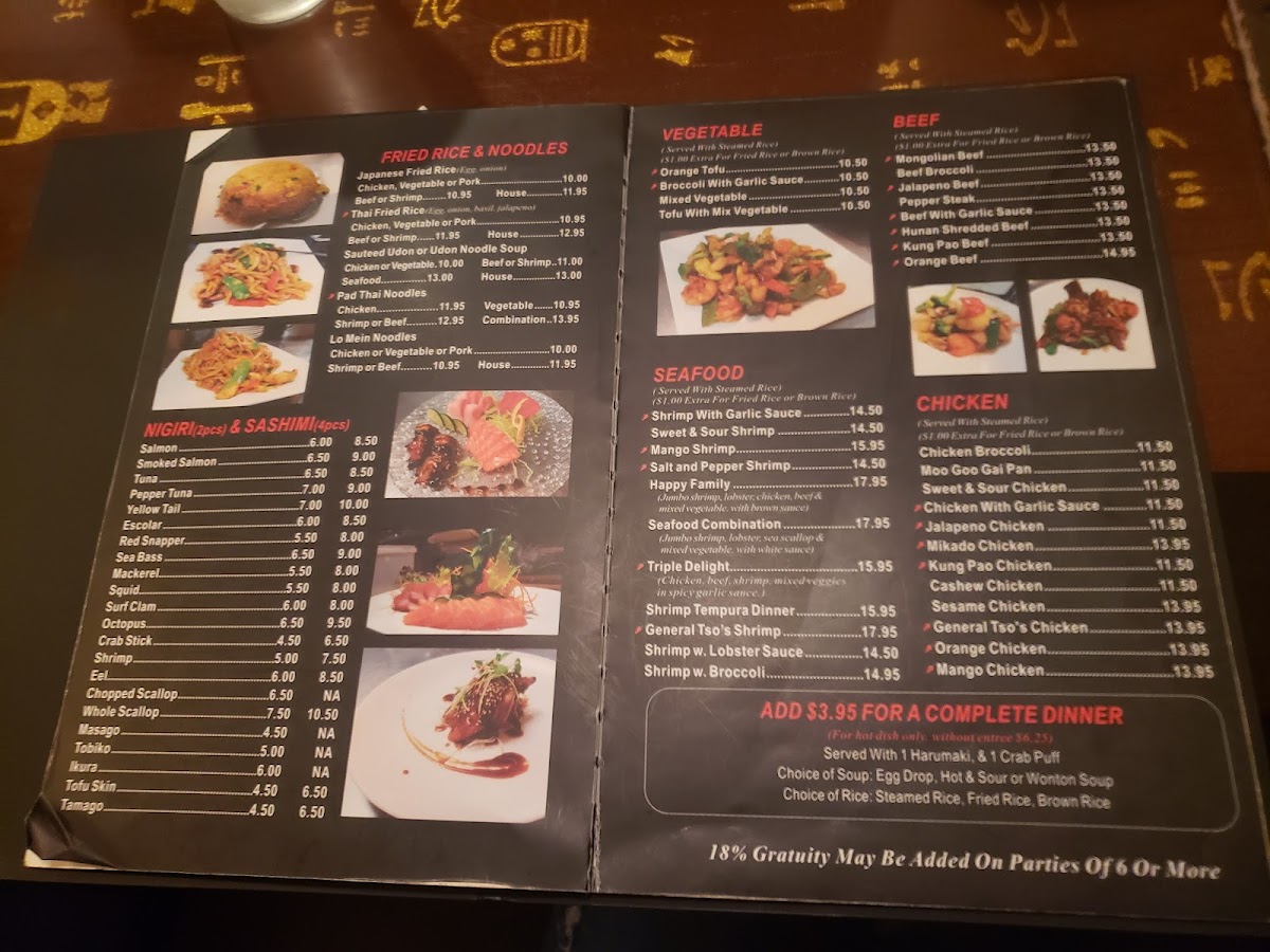 chicken, beef, shrimp, mixed veggies in spicy garlic sauce.